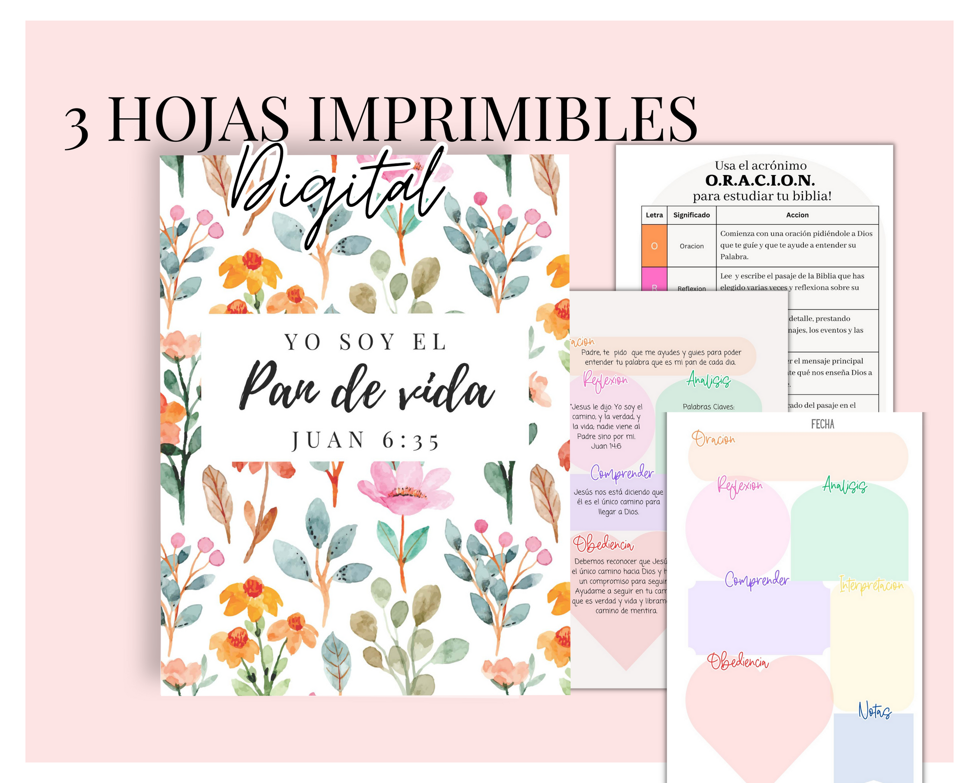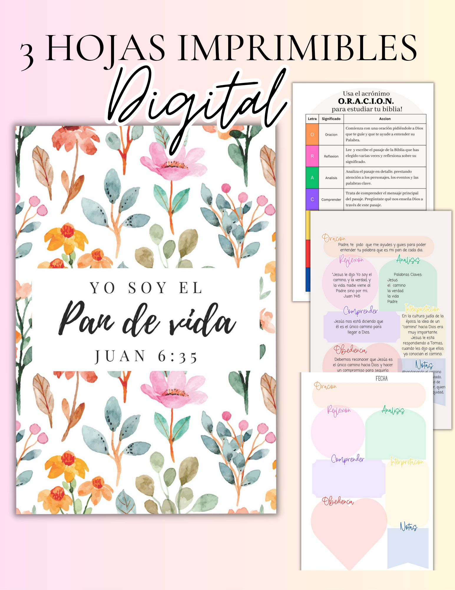 Este es un producto digital. Recibirás 3 hojas para que podras imprimir en tu casa instantáneamente y comenzar a utilizarlas como parte de tu estudio o devocional.